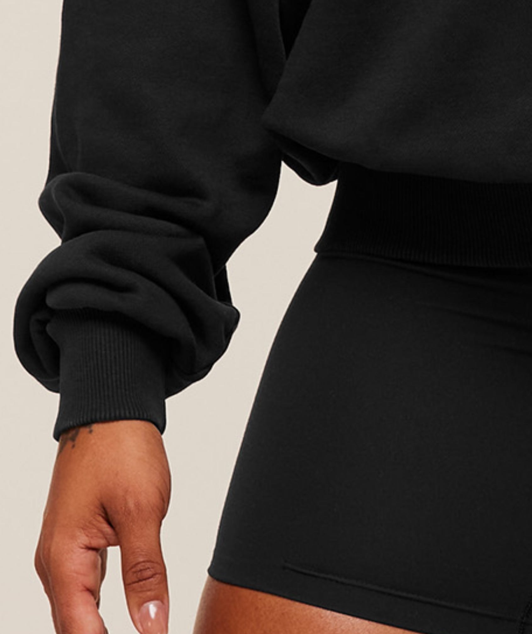 There’s no front pocket btw. Slightly thin, lightweight. You can size up for a more oversized fit on top. I did not and it’s more true to size.